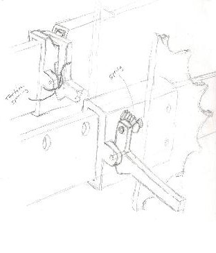 Initially, I thought the gear segments could be locked by means of a toggle which fit into a notch on the edge of the radial arms. I tried simple pivoting brackets, and an elaborate scissoring mechanism: